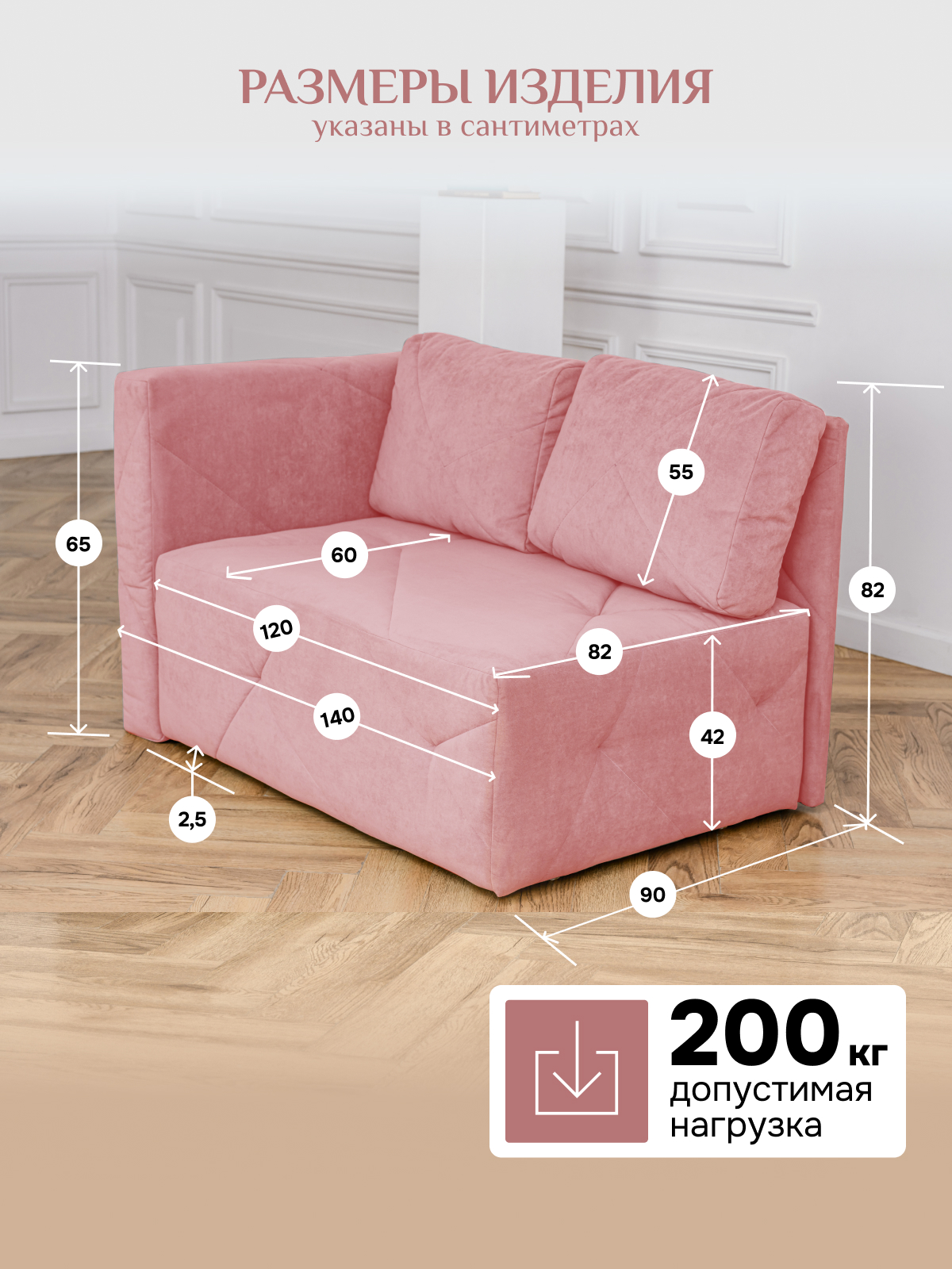 Диван 1010 розовый, левый (BRENDOSS)