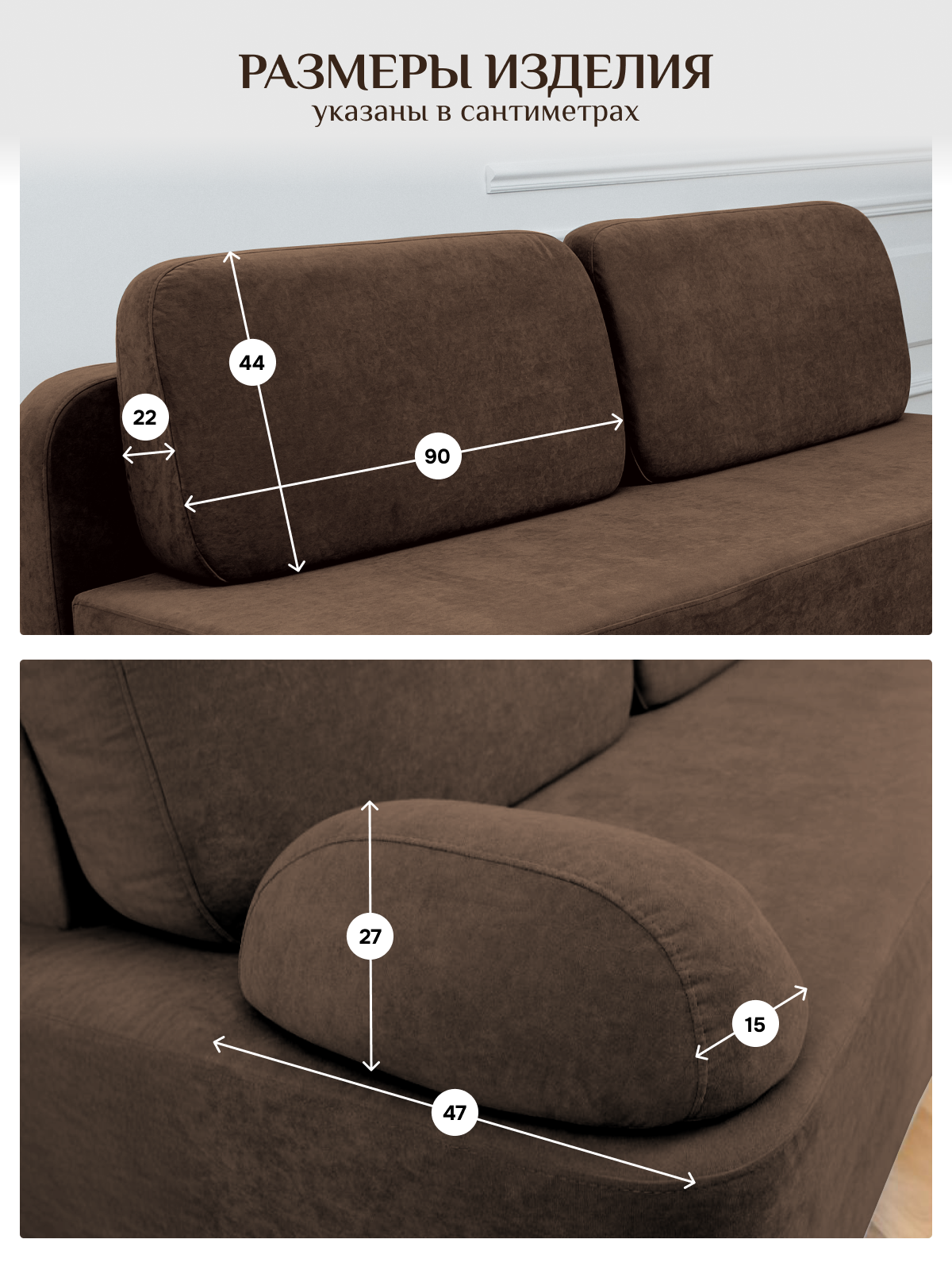 Используемая ткань - износостойкий мебельный велюр. Благодаря, бархатистому велюру диван дарит комфорт всему телу. А износостойкость ткани и лёгкий уход за ней позволяет использовать мебель без дополнительных чехлов. Одно движение руки и пролитый сок или кофе уже не оставят следа на мягкой мебели.