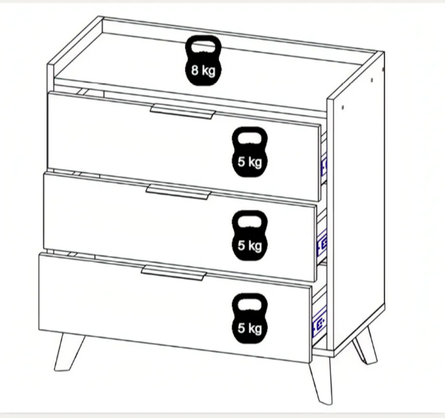 Ручки металл, ножки пластик, дно ящика белый ЛДВП