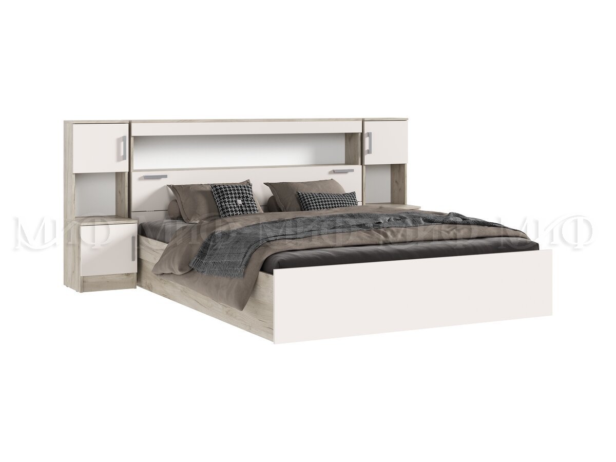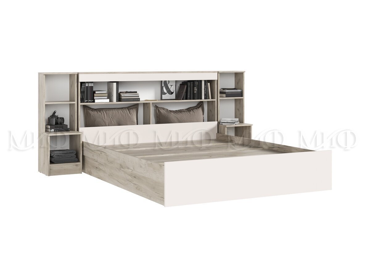 Кровать Бася 1600 мм с надстройкой и тумбами крафт/кашемир (Миф)