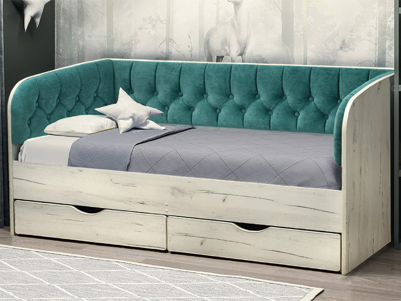 Кровать детская с продольной мягкой спинкой софа №13.1 дуб крафт белый велюр 013 (Матрица)