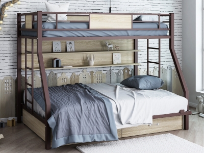 Кровать двухъярусная "Гранада-ПЯЯ 140" с полкой и ящиками (ФМ)