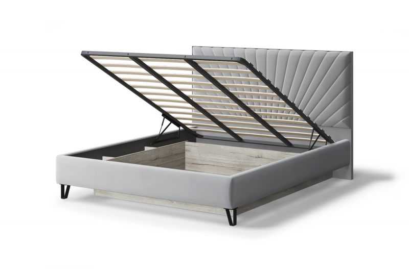 Артикул: A63712Кроватьс ПМ Аделия с мягк.изголов/царги лДСП Stone (серый)/Дуб серый, 1600 (МЛК)