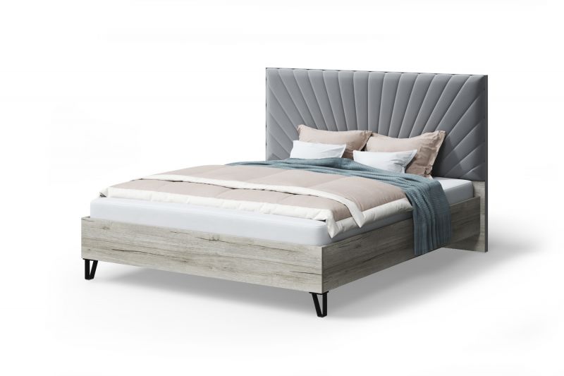 Кровать Сильвия с мягк.изголов/царги ЛДСП Stone (серый)/Дуб серый, 1600 (МЛК)