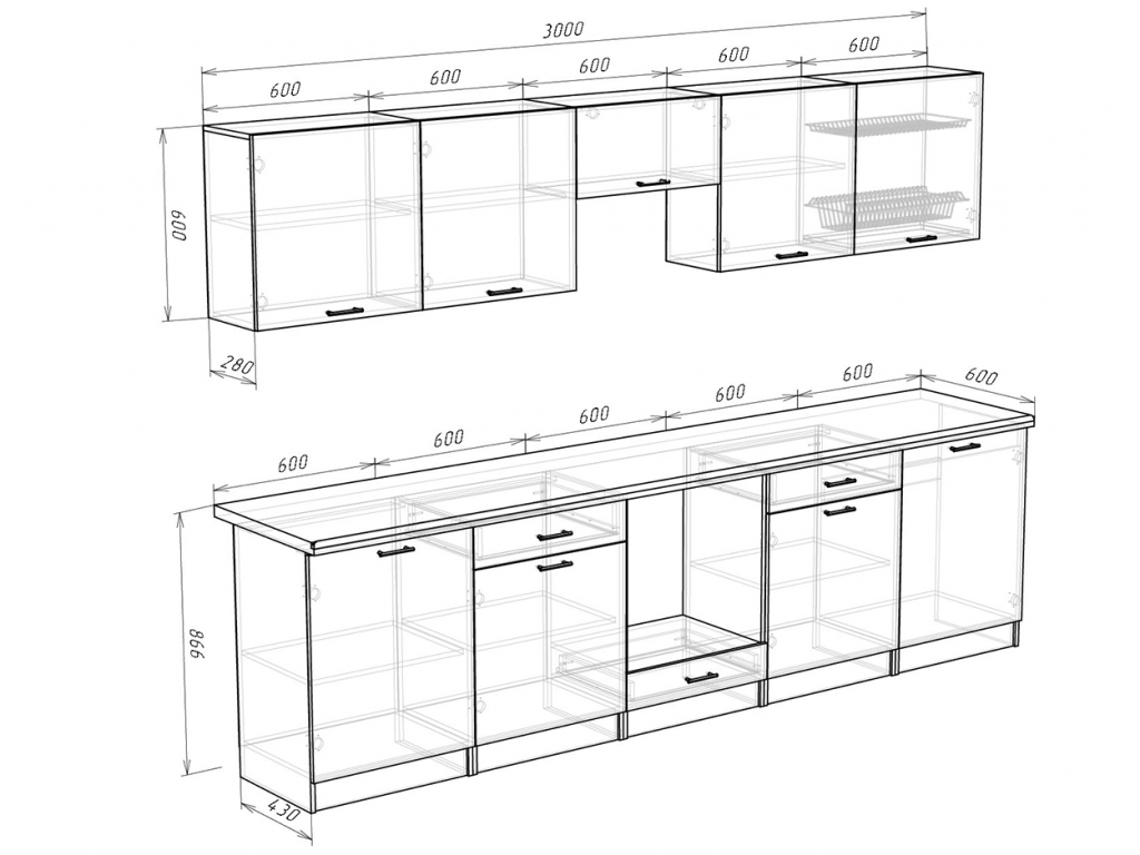 Артикул: A57507Кухонный гарнитур 3000 мм Кремона (Росток)