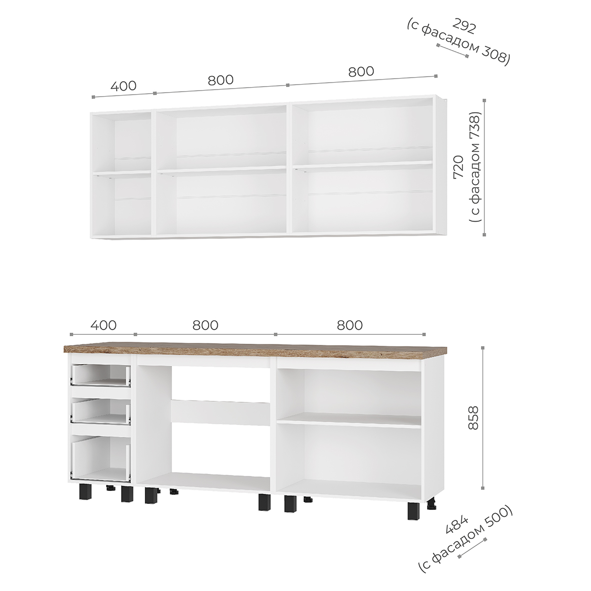 Столешница в комплекте 2002 мм, Раздельная (у каждого модуля своя