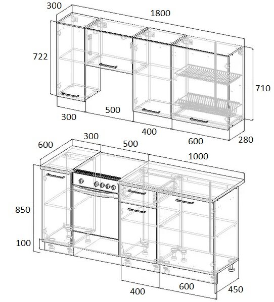 Кухонный гарнитур Фьюжн 1800 мм