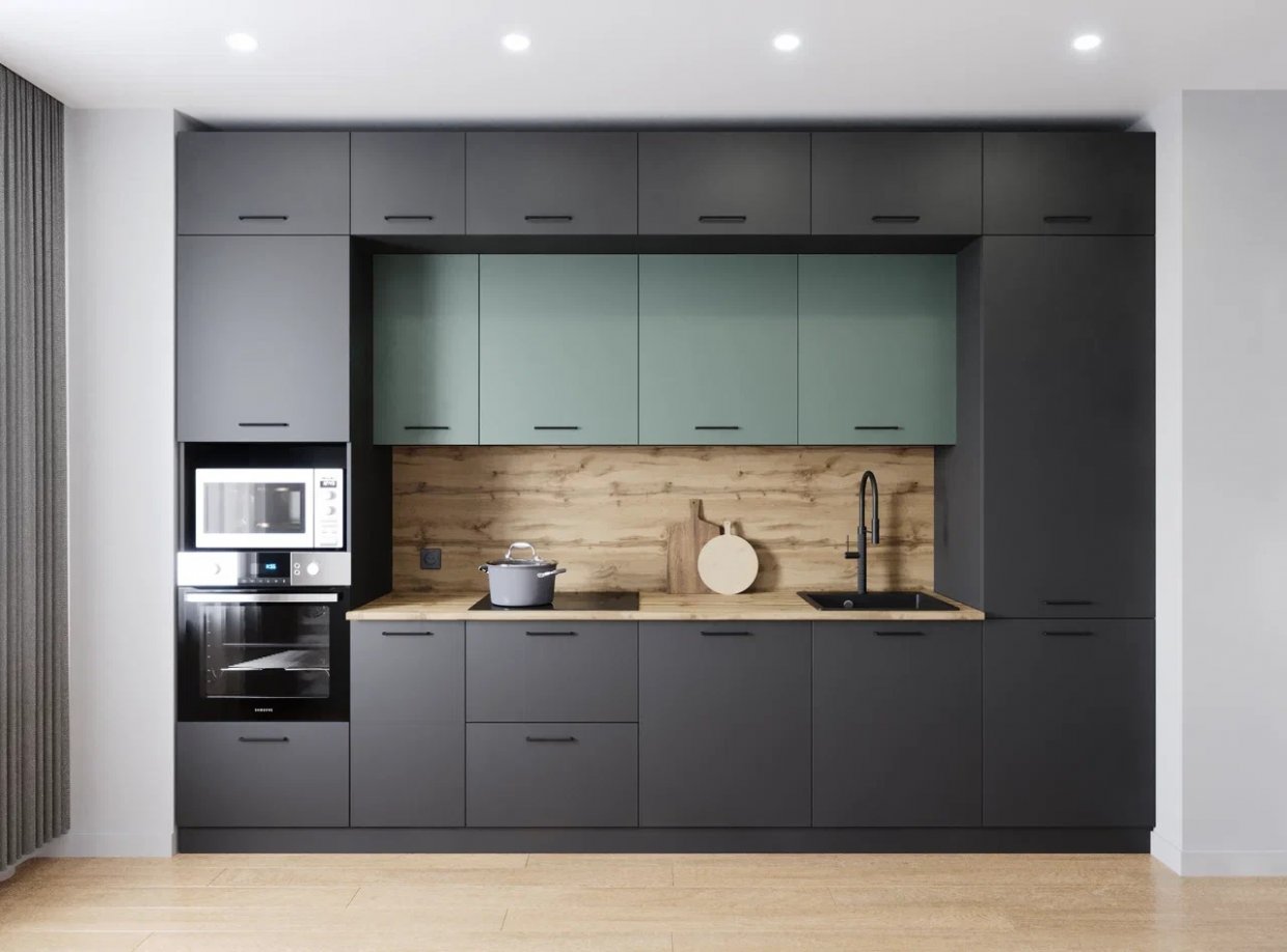 Мойка, стеновая панель, плинтус, техника в стоимость не входят.