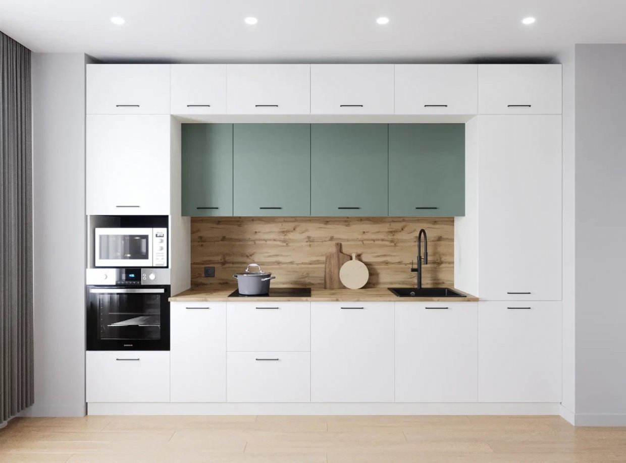 Мойка, стеновая панель, плинтус, техника в стоимость не входят.
