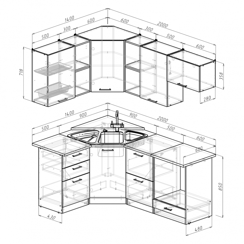 ***Мойки, смесители и посудосушители в комплекты гарнитуров не входят.