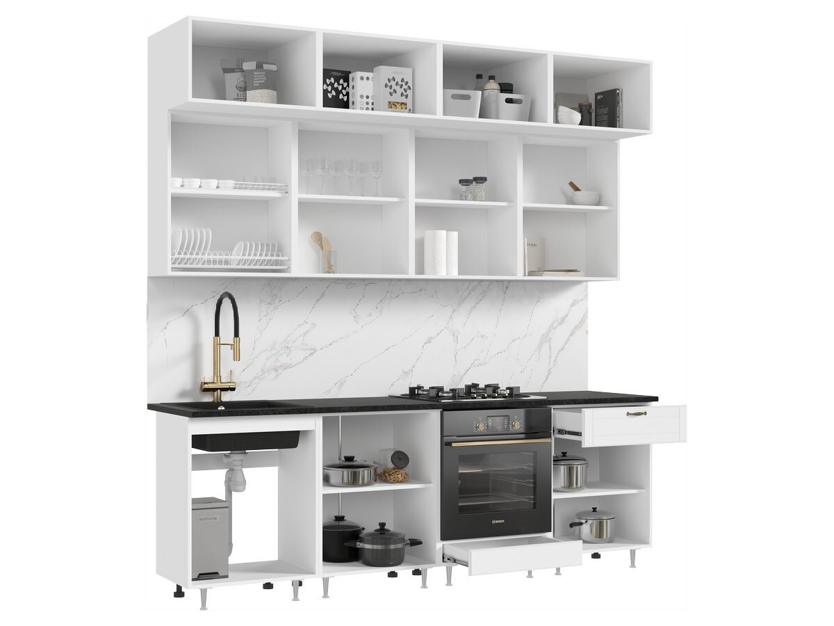 Кухонный гарнитур Престиж 2400 мм браш вайт (Миф)