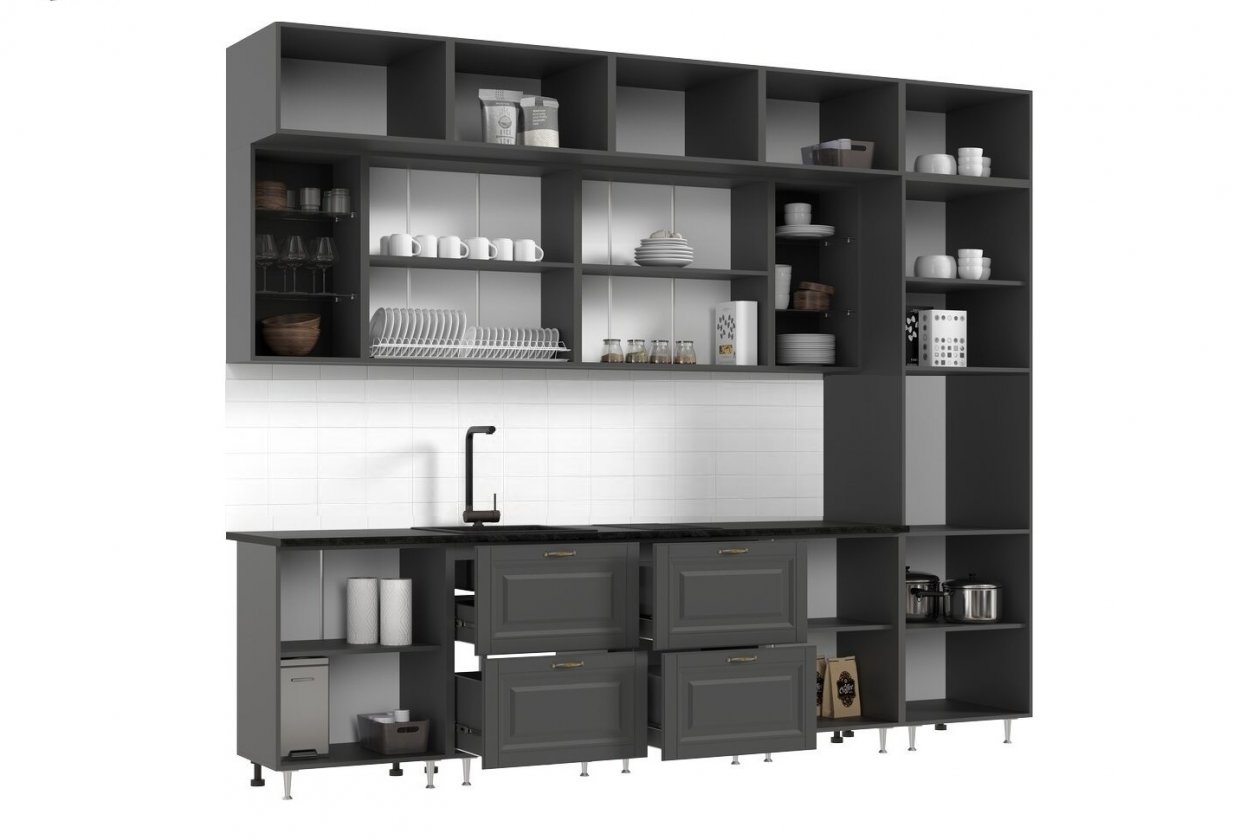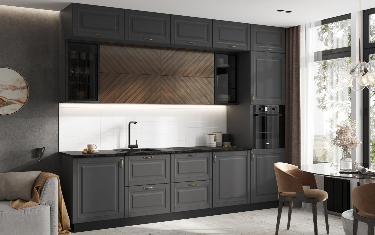 Артикул: A55012Кухонный гарнитур Престиж 3000 мм (вариант №1) графит софт/орех (Миф)