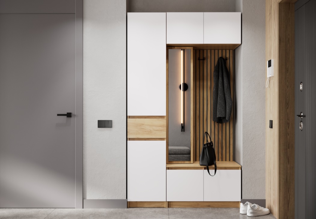 Прихожая имеет следующие цветовые решения: