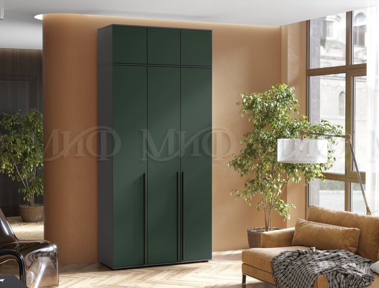 Шкаф 1200 мм 3-х ств. Норд с антресолью графит/изумруд (Миф)