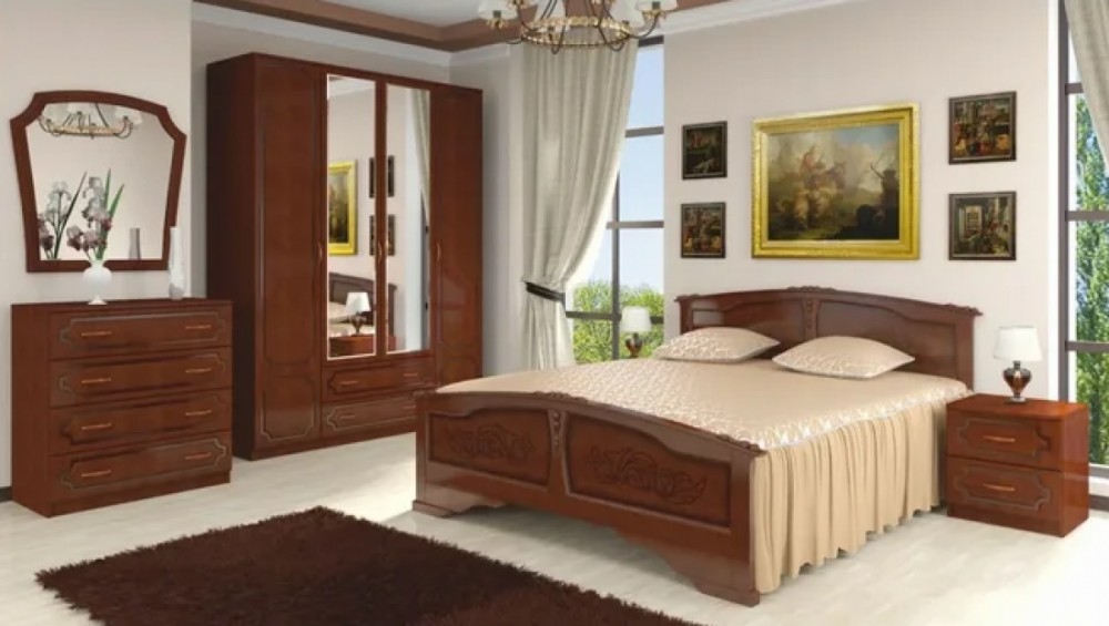 Ореховый оттенок - идеальный способ сделать свою спальню одновременно простой и элегантной. Лак не маскирует красоту древесного рисунка, а лишь подчеркивает ее, создавая идеальный ансамбль натуральности и технологической обработки.