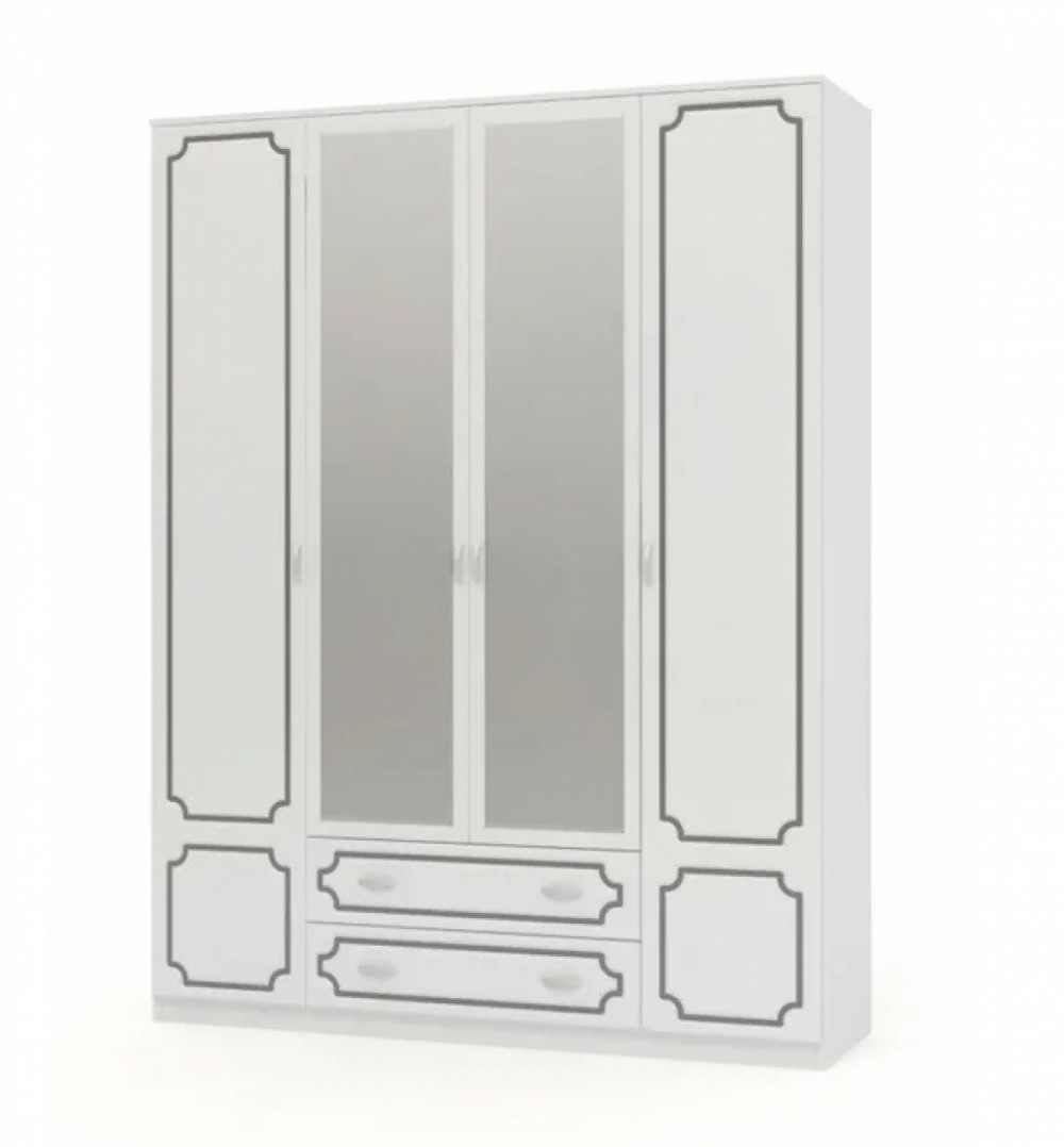 Шкаф ШР-4 с 2 зерк. ЛАКИРОВАННЫЙ Белый жемчуг