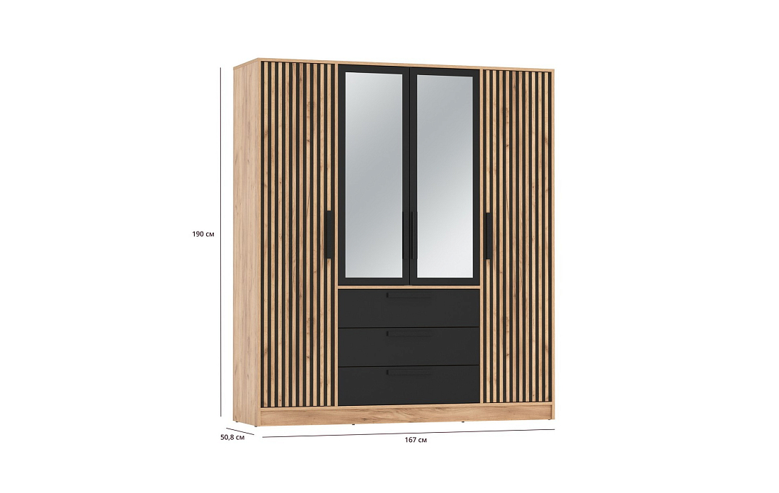 Артикул: A65284Шкаф 1600 мм 4-х створчатый Норд крафт серый/кашемир (Миф)