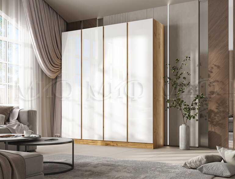 Артикул: A63861Шкаф 1600 мм 4-х створчатый Келвин крафт золотой/белый (Миф)