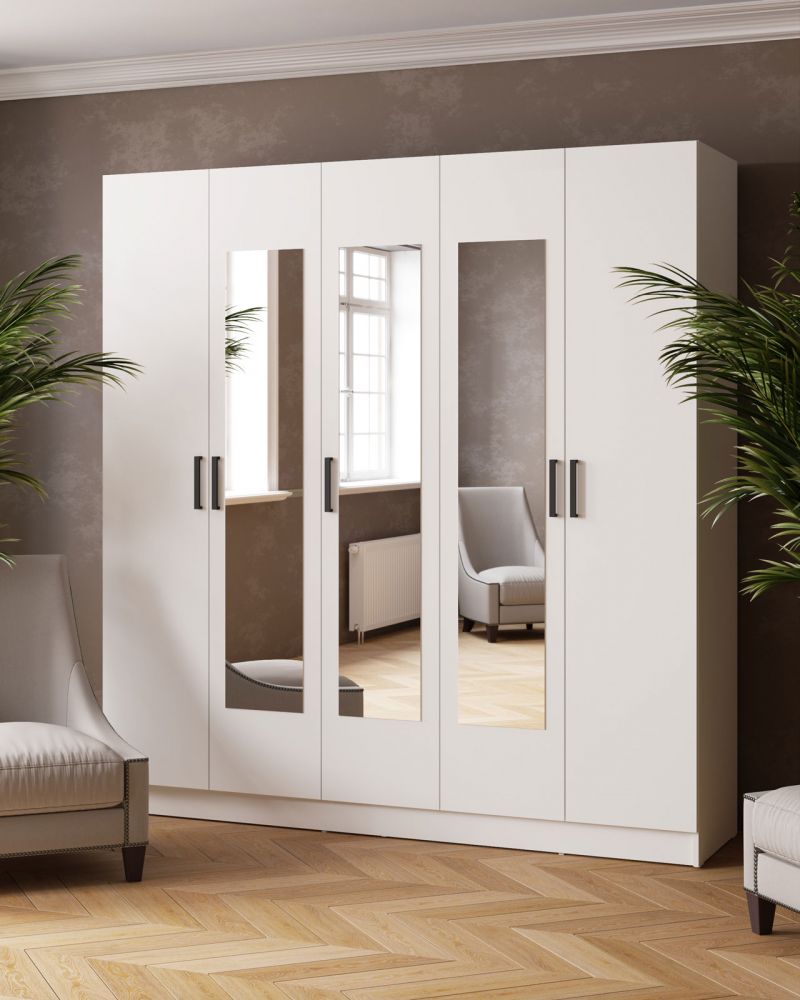 Шкаф 2000 мм Ларс с зеркалом белый (Микон)