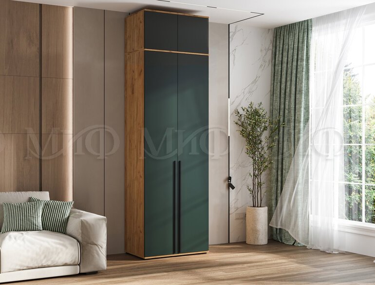 Шкаф 800 мм 2-х ств. Норд с антресолью крафт/изумруд (Миф)