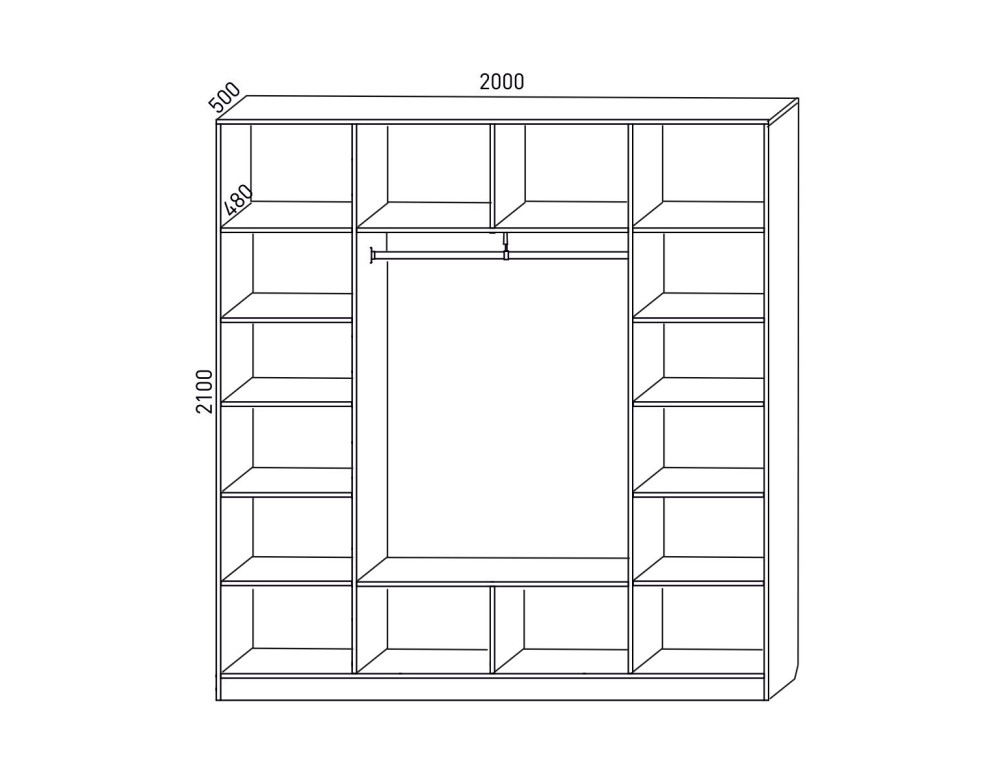 Шкаф распашной 2000 мм М6-4.2 Б+П+Б 200 (М6)