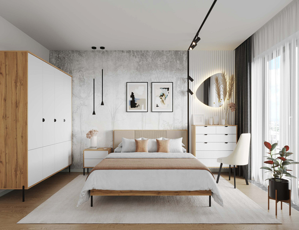 Спальный гарнитур Кензо исполняется в классическом стиле и спокойных цветах. Модель сочетает в себе простоту и функциональность, но при этом не выглядит громоздко. Она гармонично впишется в пространство, не утяжеляя его.