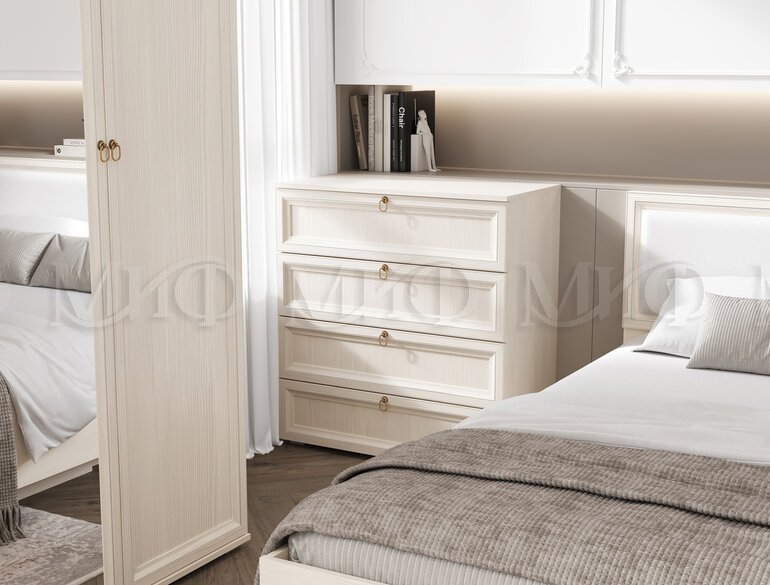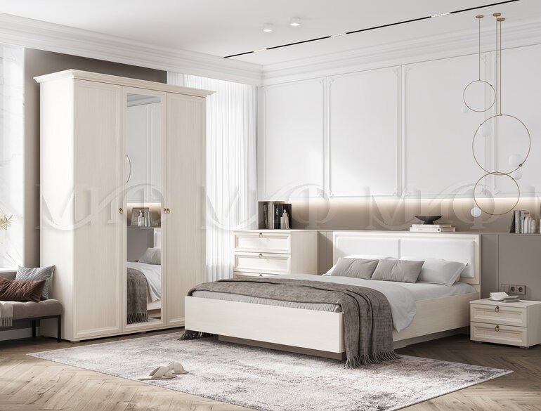 Классическая спальня «Престиж 2» — это никогда не выходящая из моды мебель. Патина на фасадах придает шик и изысканность вашей спальне. На ваш выбор спальня в светлом и темном исполнении — каждая заслуживает самой высокой оценки. (Подсветка продается отдельно)