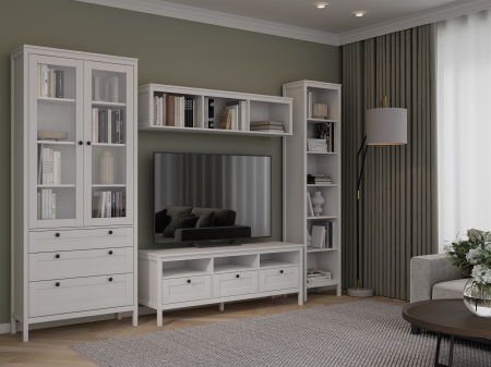 Гостиная "Фрея" имеет простую и элегантную конструкцию, которая легко впишется в любое помещение. Белый цвет создает ощущение простора и света, делая его идеальным выбором для небольших помещений.