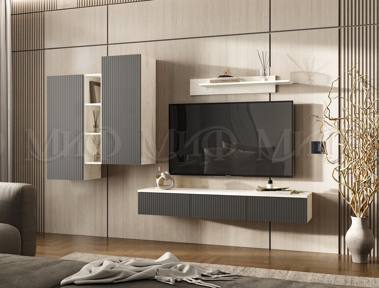 Стенка Оскар комп.2 крафт белый/графит (Миф)