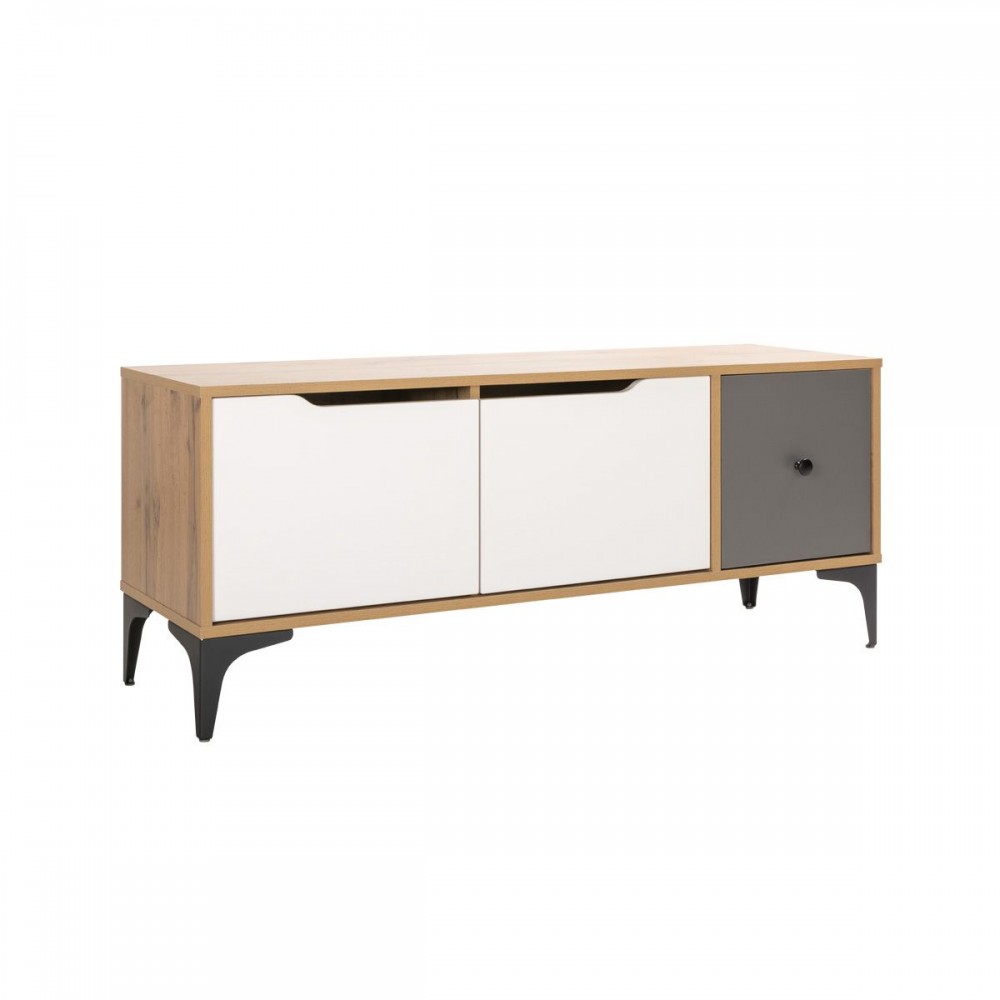 Тумба Вайс гармонично сочетает в себе строгий и брутальный декор крафтового дуба со спокойными скандинавскими фасадами.